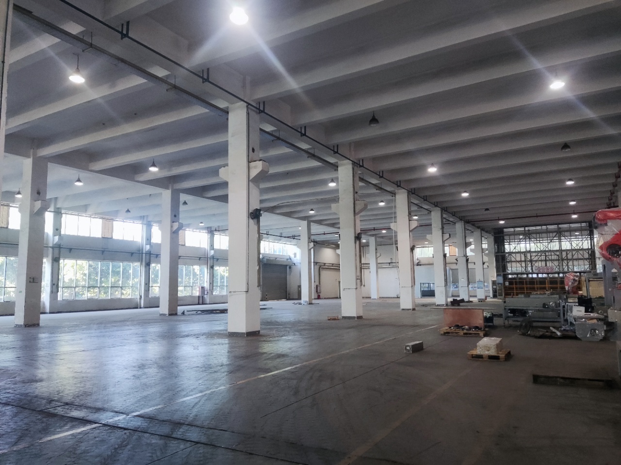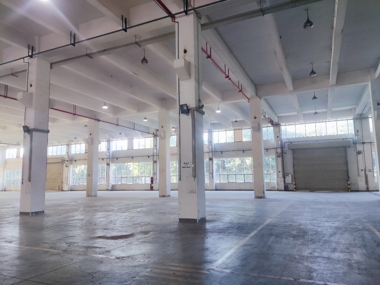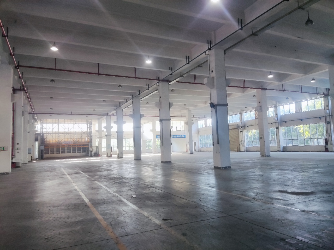 广州黄埔一园区建筑面积:41000㎡左右,有两栋楼出租。其中一栋两层大面积生产研发厂房,6600㎡,一楼高8.5m,二楼高8m。带大型升降机和天车,车间带牛角,柱间距11m×9m 。一楼承重5t/㎡,二楼承重2t/㎡。另一栋面积为5600㎡供企业总部办公。