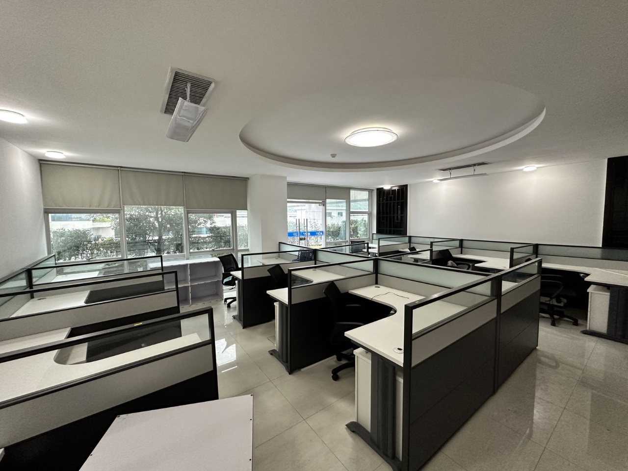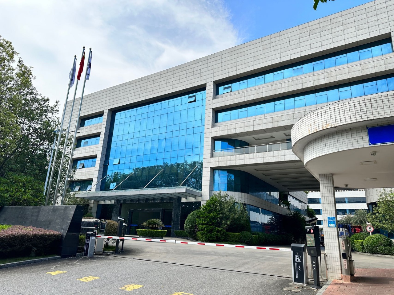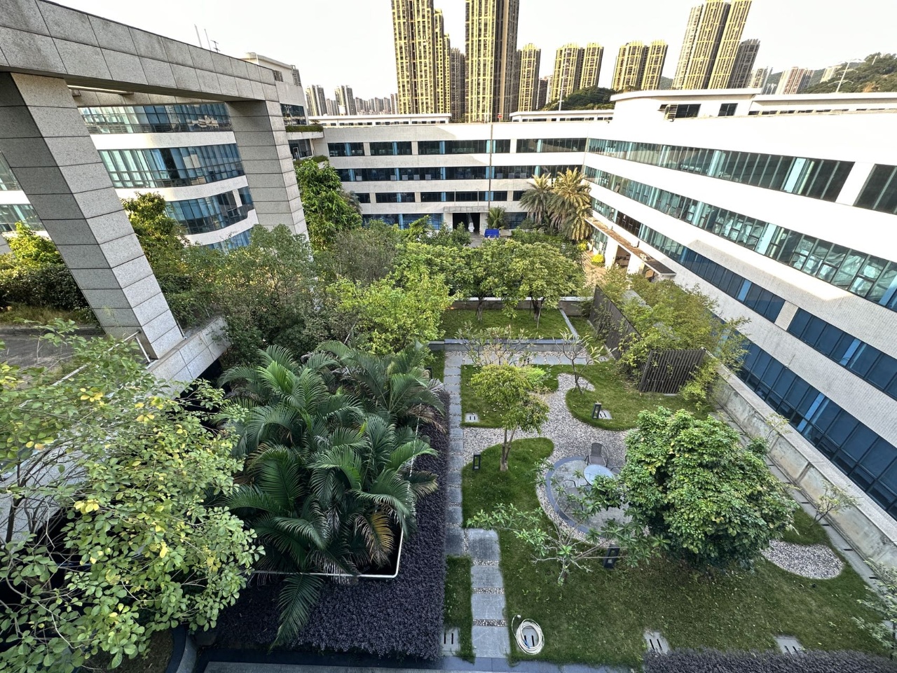 两栋均采用单片大面积玻璃幕墙,按照上市公司总部的配置,园区有大型空中花园,篮球场,饭堂,便利店,共享办公室,共享会议室。