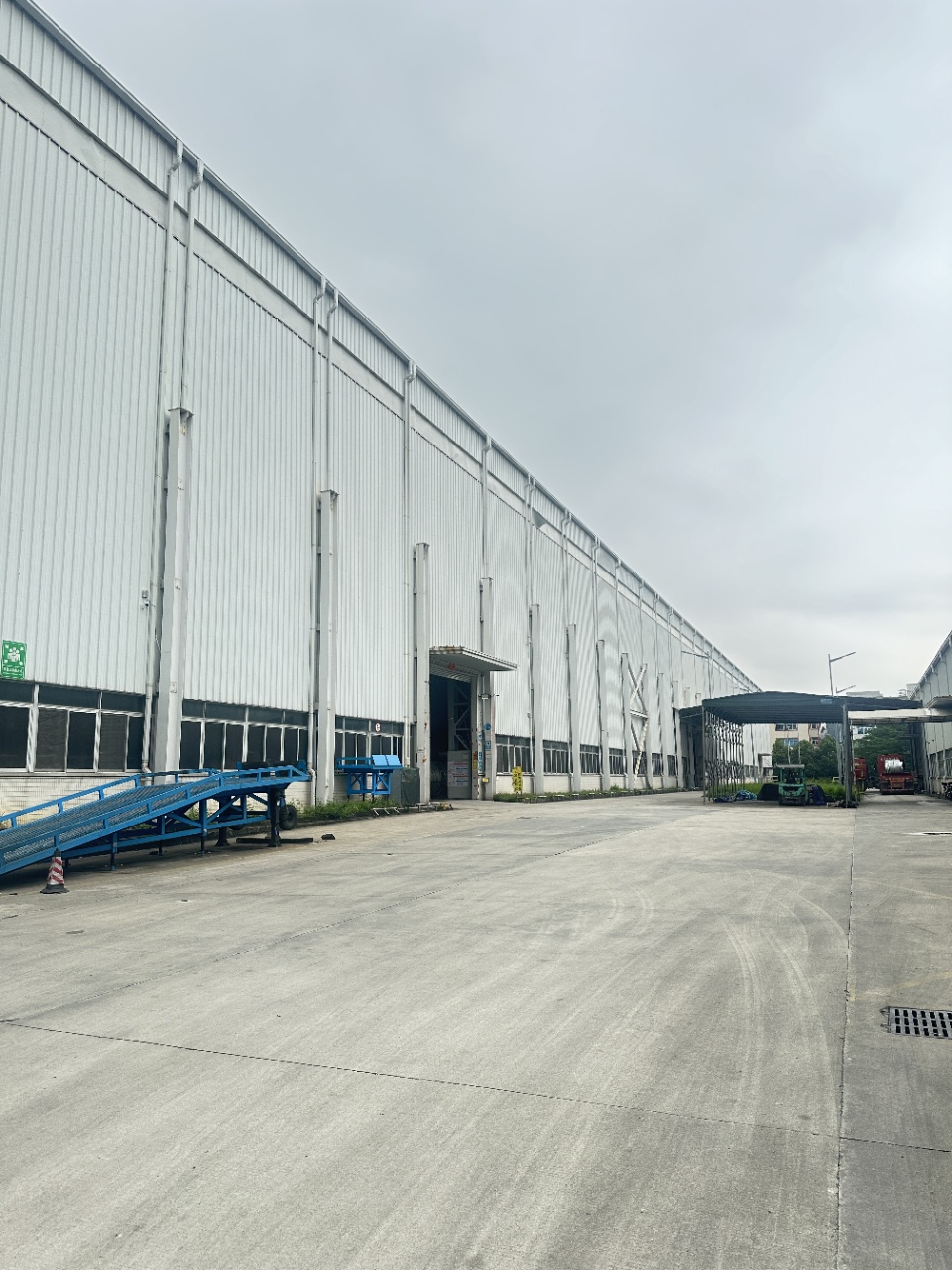 黄埔区高标准单一层厂房出租, 面积:5460平, 配套一层独立办公室, 行轨高度:前段轨顶12.5米,后段轨顶7.5米。 仓高:前段19米 后段12米。 行车共2台。 起租年限:1—8 年。可生产、可仓库。