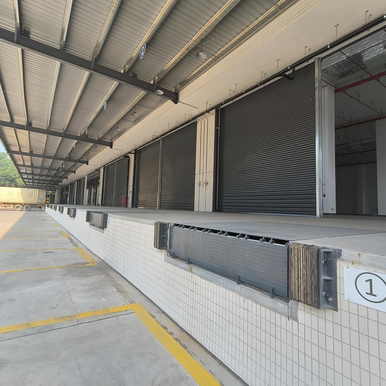 属标准高台仓带卸货平台及升降机。1万平方米超大空地,双面高台,大型货车无障碍转向,园区铺排高硬度金刚砂地面,外设有高标准全自动卸货平台升降机。基地已办理红本房产证,全园区安置排烟设施,360°全方位无死角监控。园区内配电1600kva。