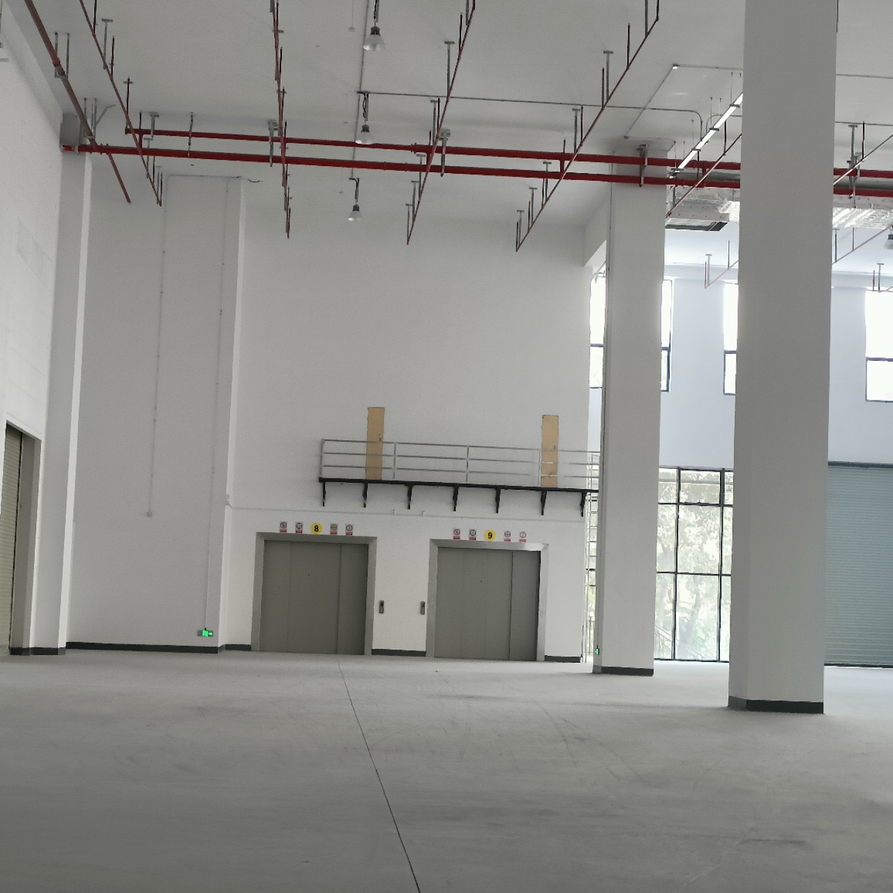 带卸货升降平台。丙二类消防。金钢砂地面,承重4吨/平方米,